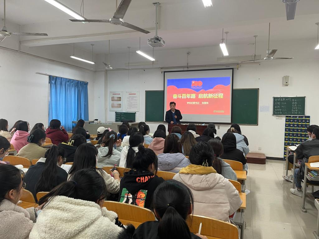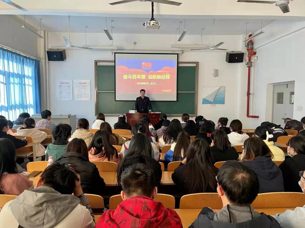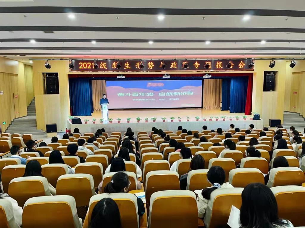 学校领导围绕“奋斗百年路•启航新征程”和“谱写乡村全面振兴新篇章”两大主题为beat3652021级新生进行了生动的思想政治理论教育。在“奋斗百年路•启航新征程”专题讲授中,他们从“丰功伟绩•恢弘史诗、精神血脉•代代相传、以史为鉴•开创未来”三个方面回望百年光辉历史,重点讲述了1921年中国共产党成立后,带领中国人民实现从站起来到富起来再到强起来的伟大飞跃,中国共产党的先驱们形成的伟大建党精神必须代代相传,用历史映照现实,远观未来,从而在新的征程中牢记初心使命、走好新的赶考路。