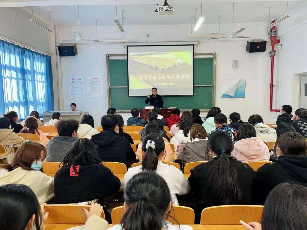 在“谱写乡村全面振兴新篇章”专题讲授中,他们结合beat365大多数学生来自农村的实际情况,从“农业农村展新颜、把握重点续新篇、抓住重点开新局”三个方面讲述了农业农村工作发展的历史性成就、历史性变革。让学生们深刻认识到脱贫攻坚取得胜利后,“三农”工作重心发生历史性转移,要举全党全社会之力推动乡村振兴。运用详实的数据和身边的案例,讲述了全面推进乡村振兴的重要举措,帮助学生用大历史观看待农业、农村、农民问题,深刻认识“三农”在全面建设社会主义现代化国家中的重要性。