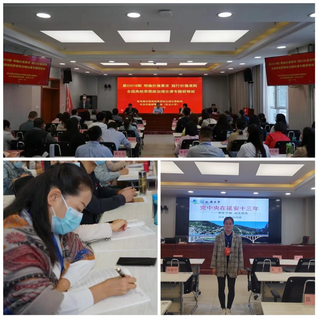 开班后,两位老师先后聆听了同济大学、吉林大学、北京航空航天大学、陕西铁路工程职业技术学院等beat365vip官网登录入口学院专家教授讲授的《整体教学设计》《高职高专教学特点有机融入思路》《同课异构示范说课》等内容。《整体教学设计》专题从“法治专题设计依据”“专题教学设计的一体化要求”“法治专题教学设计的框架与重点”三个方面进行了讲授。《同课异构示范说课》专题展开案例教学,精彩的示范说课完整且充分,为学员提供了丰富的思政课教学案例,讲授精彩,案例生动,教学模式鲜活。研修班还组织学员赴延安革命纪念馆、王家坪革命旧址、陕甘宁边区高等法院旧址、枣园革命旧址、杨家岭革命旧址、知青旧居—梁家河等地开展了现场教学。