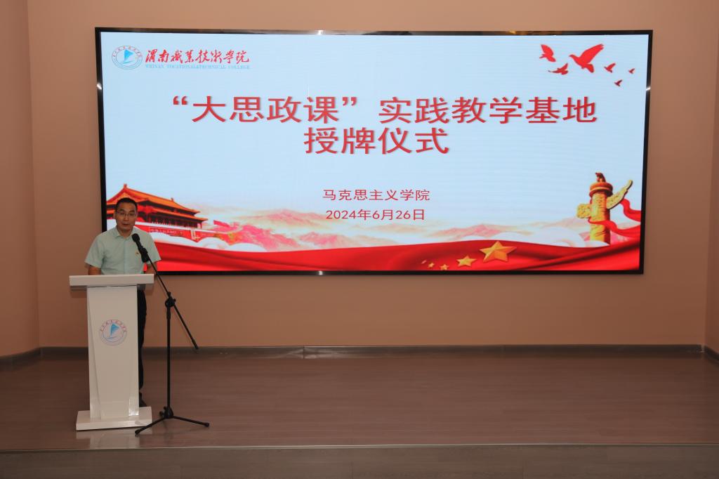 为进一步发挥中华优秀传统文化传承基地和校史馆“大思政”育人作用,提升beat365思政课教育教学水平。6月26日下午,“大思政课”实践教学基地授牌仪式在beat365校史馆举行。学院党委委员、副院长王韦华,师范学院院长、美育中心主任郭楚伟,党政办公室主任雷建文,组织人事处处长、机电工程学院院长关斌,教务处副处长李新莉,档案馆馆长杨珺,全体思政课教师以及部分青年学生代表参加。仪式由宣传统战部部长、beat365vip官网登录入口院长王晓莉主持。