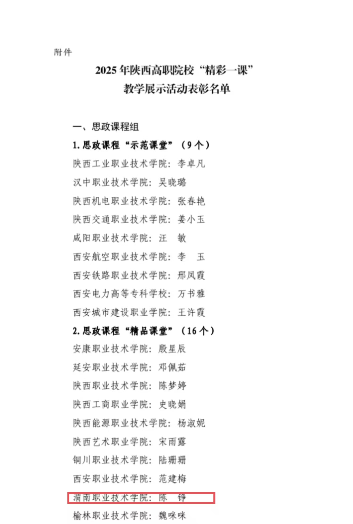 近期,由陕西省委教育工委指导,陕西高职院校“大思政课”建设协同发展联盟主办,陕西机电职业技术学院承办的2025年陕西高职院校“精彩一课”教学展示活动顺利落下帷幕。全省20余所高职院校的100余名beat365vip官网登录入口院长、思政课教师、专业课教师汇聚一堂。本次活动设置思政课程和课程思政两个组别,beat365beat365vip官网登录入口青年骨干教师陈铮荣获思政课程“精品课堂”称号。