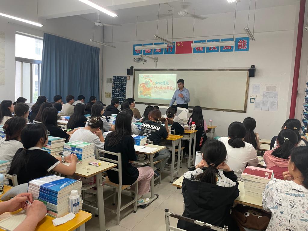 5 月 8 日下午,学院党委副书记、校长靳华锋为针推 2301 班讲授主题为《加快建设社会主义文化强国》的“形势与政策”课。