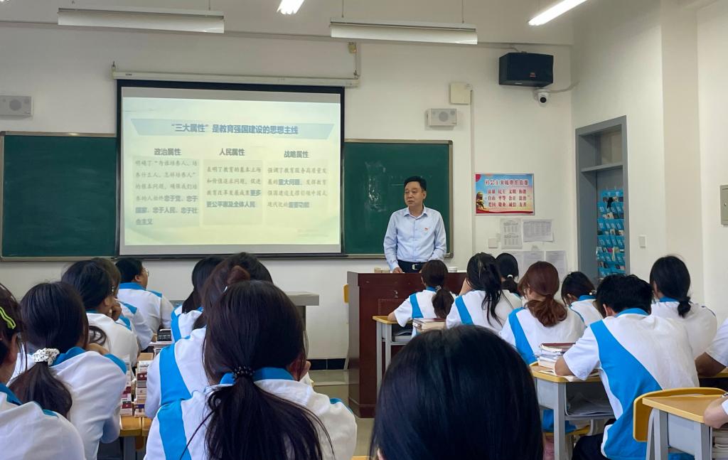 陈峰以《加强教育强国建设》为主题,深入浅出地阐述了我国从教育大国迈向教育强国的发展历程、重大意义和实践路径。课堂上,他结合国内外教育发展的实际情况,通过生动的案例和翔实的数据,让同学们深刻认识到教育强国建设对于国家发展和民族复兴的重要性。同学们全神贯注地聆听,积极参与互动交流,课堂气氛十分活跃。课后,他向青年学生提出殷切期望,要坚定理想信念,筑牢思想根基,要苦练专业本领,夯实发展基础。同学们纷纷表示,这堂“形势与政策”课让他们受益匪浅,不仅拓宽了视野,还增强了努力学习、为教育强国建设贡献力量的责任感和使命感。